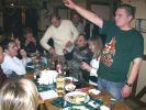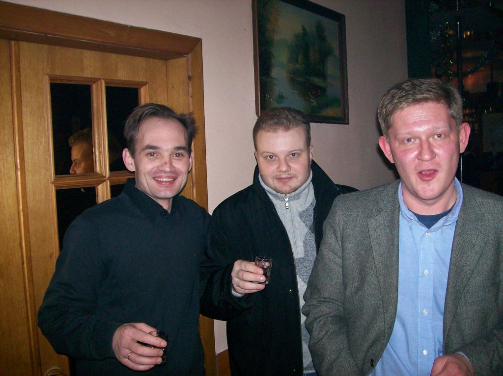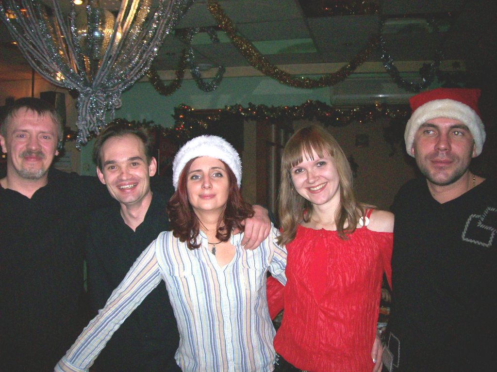 Туся грустила слегка, чем обратила на себя внимание соседнего столика , мы с Ленкой танцевали все медленные танцы сожгли все бенгальские познакомились с половиной кабака напоили Деда Мароза познакомили с ресурсом два стола (Миша и Сергей если вы это читаете значит не зря всё было выпито!) когда наши рассосались убитые ,мы остались с Реаниматором и целым кабаком полу -родных улыбчивых морд (эти морды и вызвали нам такси и погрузили в него).