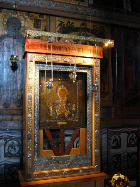 22 та самая икона Божией Матери "Знамение", икона XII века, которая считается заступницей Новгорода и его жителей, находится в знаменитом Софийском соборе, построенном 950 лет назад в Новгородском кремле.В 1170 году войска Андрея Боголюбского осадили Новгород. Архиепископ Илия ночью услышал голос, велящий взять образ Богоматери и обойти с ним по городскому валу весь город. Когда икона была возле Десятинного монастыря, вражеская стрела попала в лик Богородицы, и Божия Матерь заплакала. После такого знамения враги пришли в ужас и отступили.