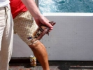 а океан, - это да, это ваще, то в волнах, то весь акварельный, то крабы, то ещё чо. на рыбалку опять же съездил. капитанша показала по табличке, чо ваще можно поймать, чо из этого ядовитое и надо выкидывать, а чо ништяк. и пока жена метала харч в каюте, я выловил на половинку варёной креветки вот такого полосатого ништяка.