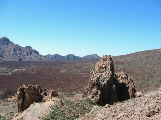 тейде опять же. вулкан ниибацо какой здоровый и виден отовсюду, чем немного зайобывает. вроде он как самая высокая точка во всей испании. до него едешь через каньядесы - этакая вулканическая лагуна. наверх - на фуникулёре, перед входом стоит скульптурный чувачок и как бы говорит "хеллоу пацаны, ю а велком!".