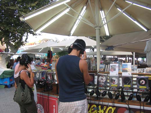 2. Торговля сувенирами и прочей мишурой здесь происходит повсеместно. В частности, таким вот оригинальным манером продаются компакт-диски с коллекциями клубной музыки. Подошёл, надел наушники, послушал. Понравилось – купил. Диски, кстати, не сильно дешёвые. За одну штуку просят порядка 30-ти евро. Зато лицензия, и полное соблюдение авторских прав. Впрочем, карману от этого не легче.