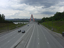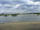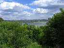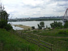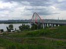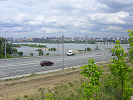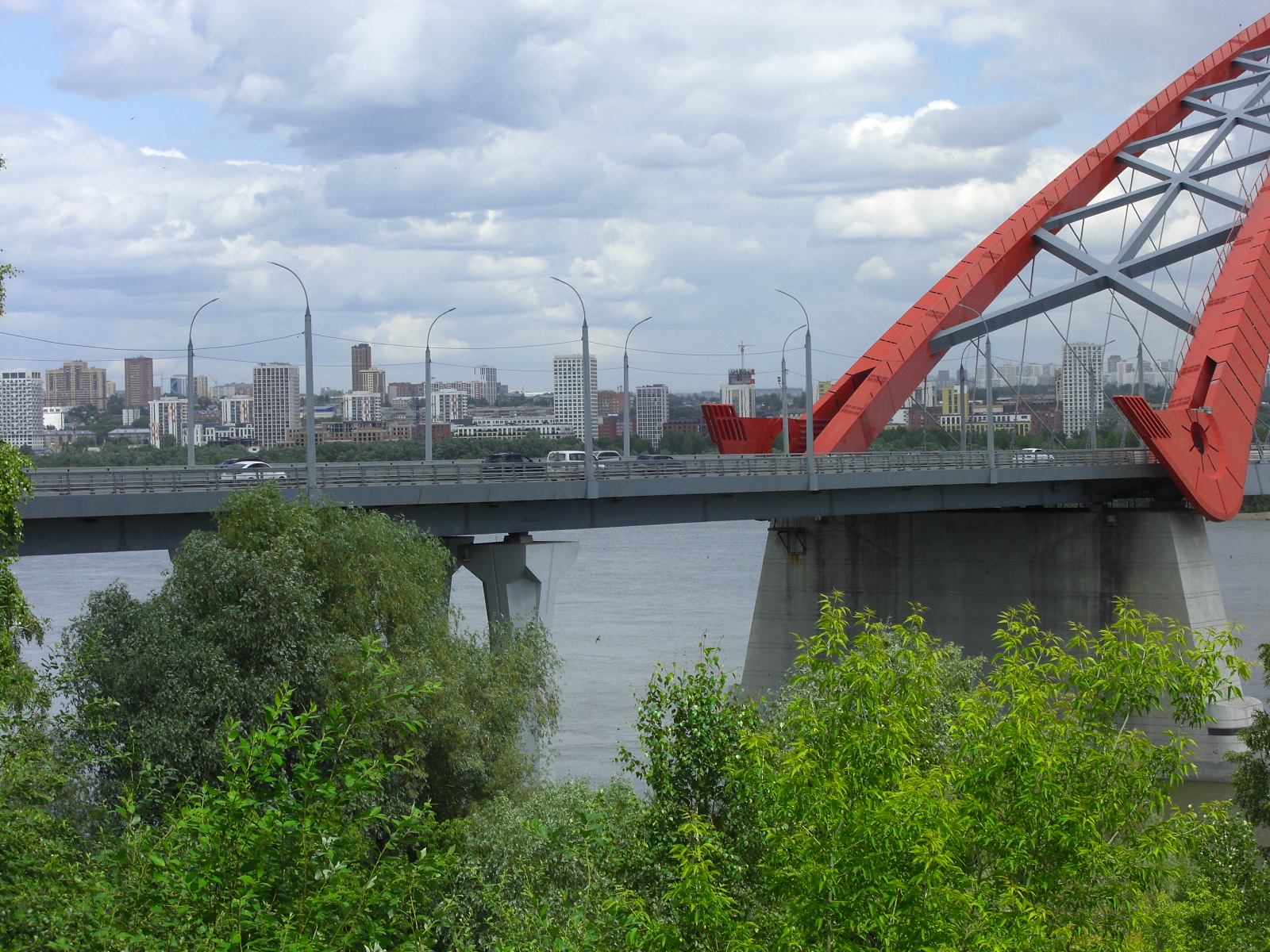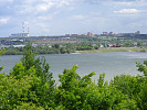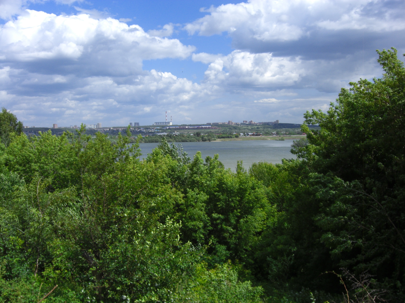 Вид с левого берега на правый, в т.ч. на мой мкр-н. А еще уже не очень новый мост (сейчас достраивают совсем новый) и заброшенная космосвязь Орбита (1967 г.р.).