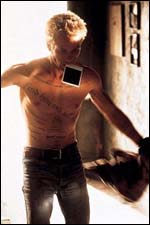 Уф, объяснил кое-как. Вобще-то это основной чит фильма. Такая путаница захватывает и заставляет каждую секунду напрягать мозги - сопоставлять соседние эпизоды, пытаться подогнать новые факты под общую картину происходящего. СпрОсите, нахуй это нужно? А нужно это для того, чтобы наше восприятие действительности было как можно ближе к восприятию главного героя (см. эпиграф). Например, официантка Троица приносит Ленни кружку пива "за счет завидения", тот удивленно пьет, потом Троица забирает кружку, сказав, что пиво несвежее, и приносит новое. Все думают: чё за хуйня? В следующем эпизоде оказывается: Троица узнала о болезни Ленни и решила это проверить - налила пиво, смачно харкнула туда, добавила слюну какого-то посетителя и самого Ленни, а через некоторое время отдала ему, и он начал пить без заднего… Песдец. Вопчим, оценивая сюжет, я бы поставил Memento на второе место (после Fight Club, конечно, куда без него).