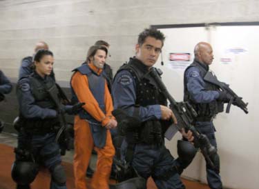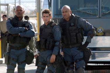 Проходит шесть месяцев. Нам показывают как Фарел тренируется истекая потом и блюя (на полном серьезе), и изо фсех сил надеется на возвращение в SWAT, чтобы пиздить террористов по яйцам. И тут появляется ОН. Он - это лысый Самуел Л Джексон, старый ваяка бля, которого тоже ненавидит начальство Фарела. И он естественно набирает себе гоп-стоп спецбригаду для особо опасных бля клиентов, в которую фходят фсякие разъебаи, включая дефку, которая фсех пиздит, ЛЛ Кул Джея, каторый ахуенно гонятеся за нигерами по помойкам, какого-то пидара с нехорошоей мордой (и точно бля, фсе наши подозрения насчет него оправдаются), который стреляет харашо, потом еще одного гандона - брата бывшей падружки Фарела, и собсно, Фарела.