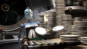 Сынок растет, и родители, чтобы особенно не попадать на бабки, апгрейдят его всяким старьем, оставшимся от родственников. Папаша работает пасудомоечной машиной в ресторане, а сынок на досуге мастерит всякую хуйню. А вечерами они вместе фтыкают в телек, где самый жырный робот на планете Бигвилд рассказывает, как зоебись живецца в Робо-сити, как они там ценят юные дарования и помогают всем роботам планеты с запчастями. Родни подрос, и в один прекрасный день решил стать молдаванином - съебацца в столицу на зароботки.