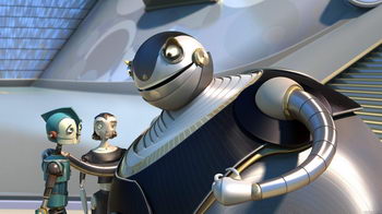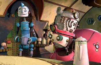 Приехав в Робо-сити, Родни сразу ломицца в офис к Бигвилду, но не тут-то было – Бигвилда там уже хуй не ночевал. А ночевал там теперь робот с погонялом Поршень, который толкает такую телегу: а давайте теперь роботам не продавать запчасти, гыгыгы, а продавать сразу готовые корпуса. А всех старых роботов, у кого не хватит денег на гламурный апгрейд – в переплавку, и неебет. Казалось бы – весьма разумное решение, правильно? Но роботам, у которых нет бабосов, оно почему-то нихуя не нравицца, и они начинают роптать. А тут появляецца этот деревенщина Родни, заводит себе дружков из местной гопоты и начинает налево-направо занимацца народным целительством – ремонтирует и апгрейдит весь местный хлам. Естественно, это ниразу не нравицца Поршню, а особенно – его мамаше, которая, собственно и руководит производством по переплавке роботов. Понятное дело, што они начинают охоту на Родни.