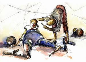 Некоторые критики называют стиль, в котором лабает Ангизия, оперно-металлическим барокко. Ваапще-то я не сторонник навешывать типовые ярлыки на такие яркие группы, как обосреваемая команда, но для пояснения тем, кто не слушал эту банду, я бы назвал их направление как камерно-готическую оперетту (не сцать, космонавты, это только начало). Мне кажется, если бы Эндрю Ллойд Вэббер проявил интерес металлу, то его мюзиклы бали бы похожи на те, которые делает Ангизия. Следует заметить, что при кажущемся постоянстве сваего направления Ангизия от релиза к релизу координальнейшим образом меняет стиль аранжировок и соответственно стиль исполнения своих композиций. Последние три альбома объединены тем, что взгляд Энгельке устремился из Австрии к нам на восток, в Рассею… На второй и третьей пластинке есть даже несколько партий, исполняемых на корявом русском языке: "… прийятъелъ, гальупшик - как можщно скоррей…" - звучит афигительно смешно, но многое ваще не разобрать, чета пытаются произнести, а русский не дается просто так с листа!!!