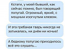 «Минут пять я блюю, всхлипывая и прерывисто дыша в перерывах между позывами. Блюю самозабвенно и страстно, выворачиваясь до самого дна. До немых, задыхающихся движений лица. Мне вспоминается виденная сегодня утром умиравшая рыба на горячем асфальте, возле рынка. Наверное, сейчас у меня такие же глаза...»