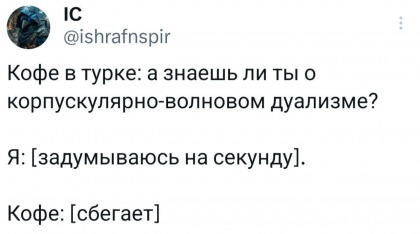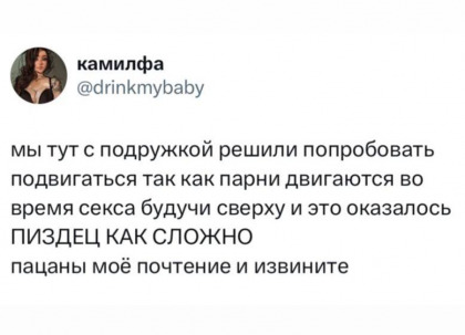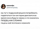 «Тут, говорю, проблема то в чем – вышли мы из дома в одно время, а попали в другое. То есть, чтобы нам вернуться назад надо снова в дом войти. Лариска аж в ладоши захлопала от радости, что все так просто. На шею мне бросилась и на ухо шепчет, мол, у меня черный пояс по минету, обещаю – вернешь нас домой, я тебе покажу, что такое актриса народного театра не обремененная комплексами.»