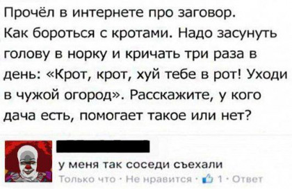« ... пейте минеральную воду, смотрите ток-шоу, чуствуйте прилив сил, подбирайте в сквере завалявшийся фантик, не любите грязь и пыль, здоровайтесь с соседями, глотайте жизнь полной грудью, поженитесь на хорошей, доброй женщине и после работы с улыбкой на лице и словами любви ебите йейо в жопу. »