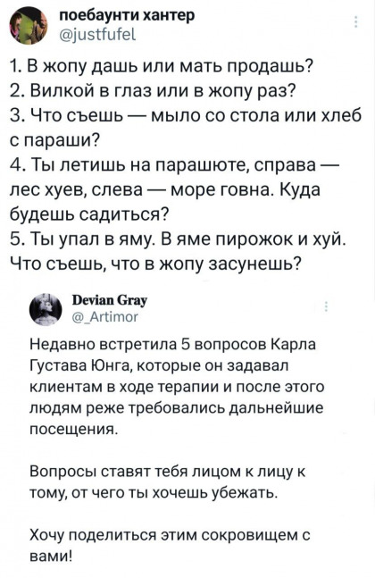 «Коридоры меж тем сужаются, и фонарик почти погас, сигареты и спички кончаются – наступил отчаянья час. В полусумраке чудища мерзкие корчат рожи, меняя черты: это, видимо, комплексы детские – не иначе, боязнь темноты. Сундуки, железом обитые, все в заклепках – рискни, открой! Это страхи пред целлюлитами и морщинами с сединой…»