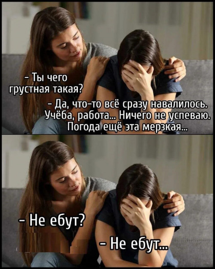- Серое, и в дырах. И не на день рождения, а на первое мая. И это было не платье, а халат. И не подарили, а спиздили с бельевой верёвки у соседки.»