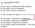 «В общем, ты такая, в шляпе и вьетнамках, приходиш ко мне, с чимаданом. И говориш: «Здрасьте, это вы квартиру сдаёте?» Я тебе отвечу: «Ну я, хуле… Заходи» Ты заходиш, показываеш мне песду, и я тебя ебу на чимадане, закрыв тебе ебло шляпой. Гыгыгы!»